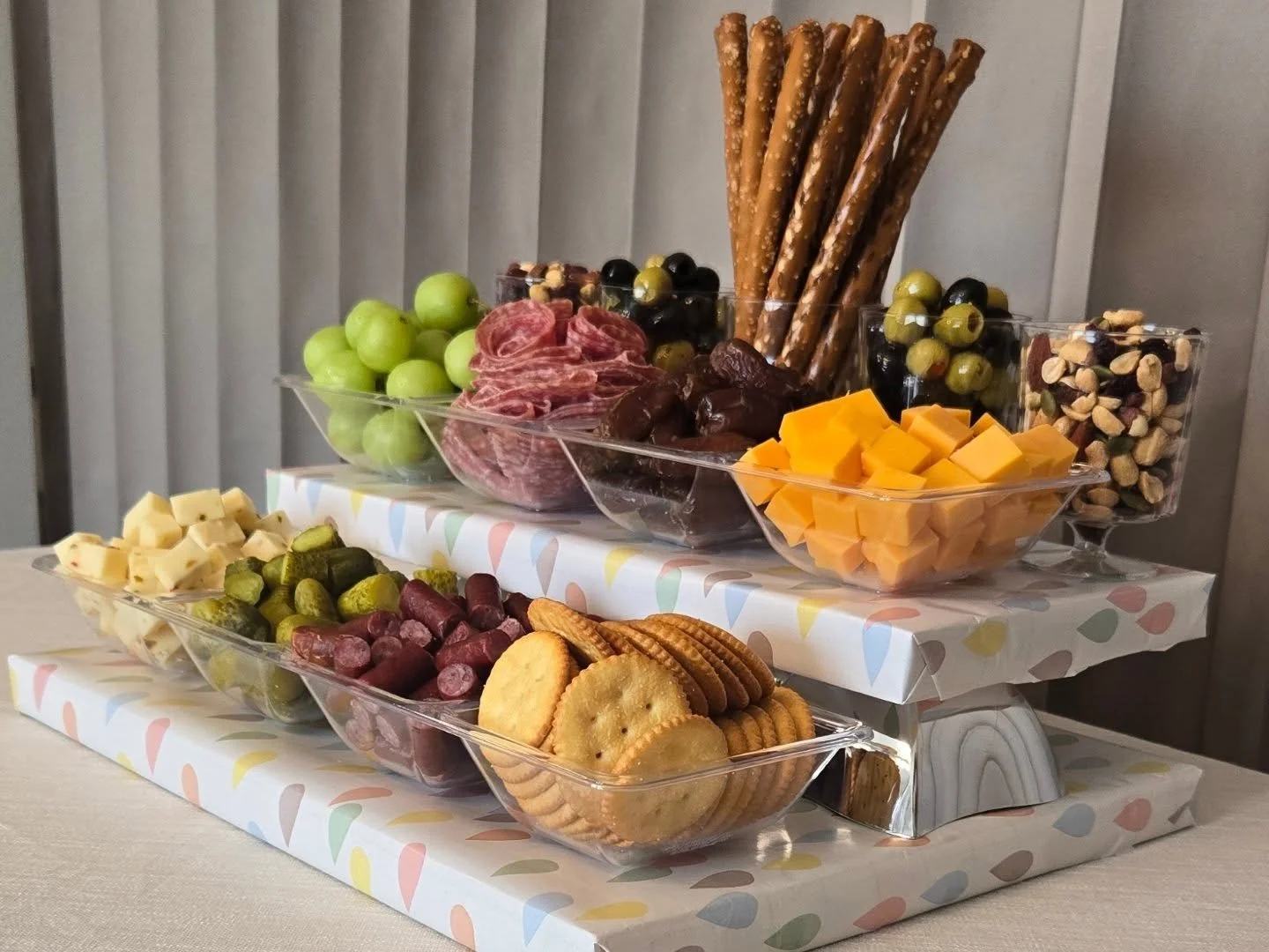 Our disposable displays are fully customized based on your selected color and/or theme. Each candy display includes a curated mix of color-themed candies. (Charcuterie and Fruit options are also available for additional cost)